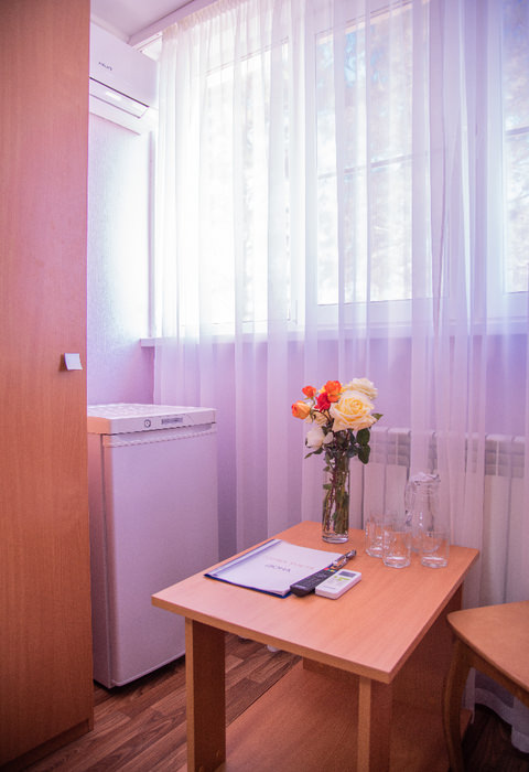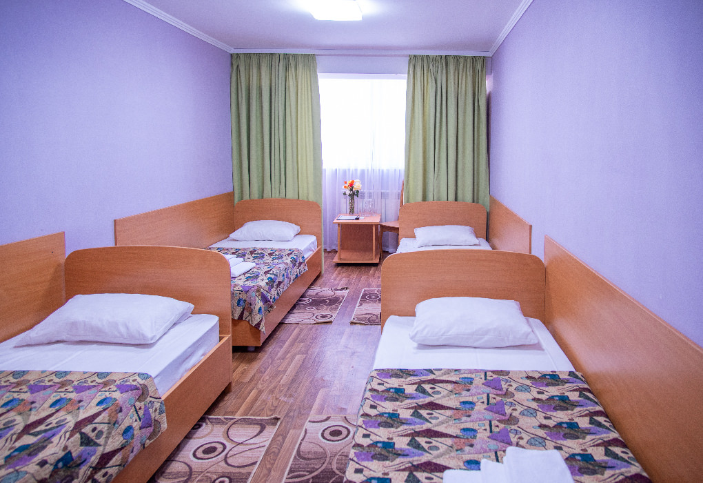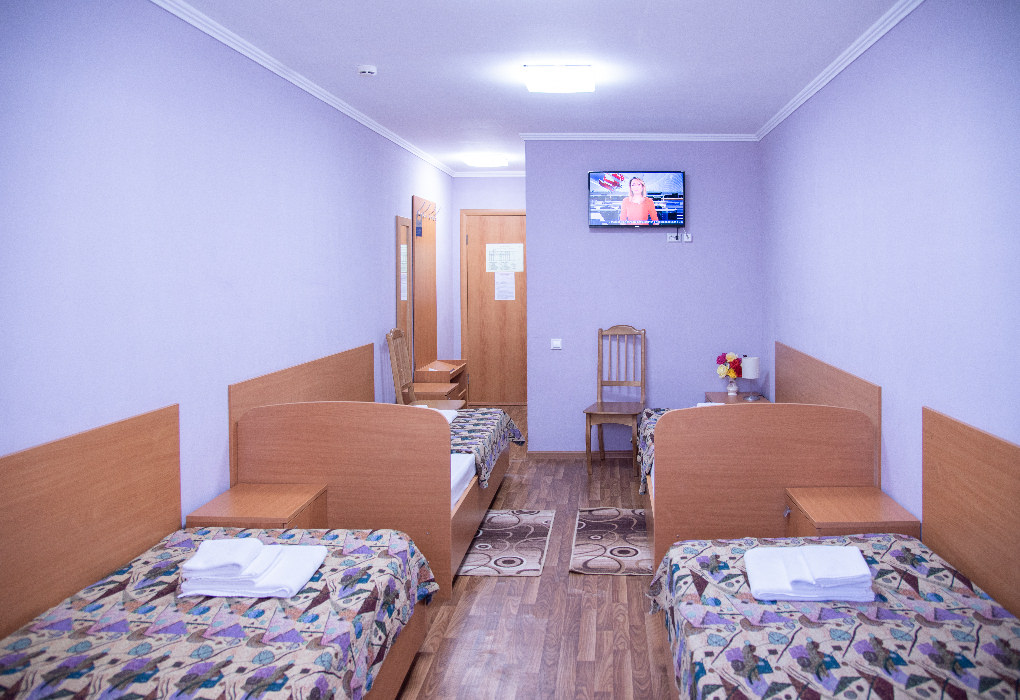 Площадь номера - 23 кв.м. 1 комната. 4 осн. места. В номере: телевизор; холодильник; сплит-система; душ; туалет; Wi-Fi; 1-спальные кровати; журнальный столик; зеркало; стулья; шкаф; полотенца.
